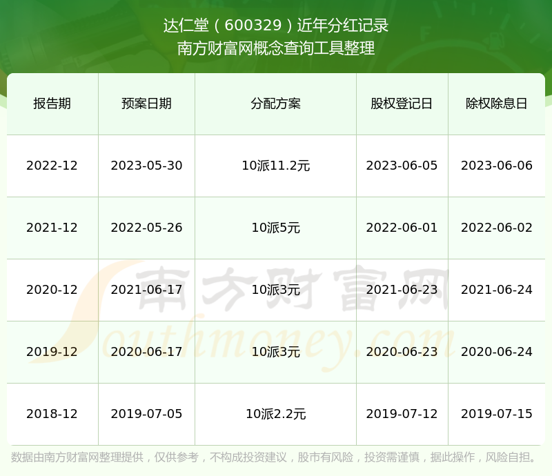 達(dá)仁堂最新一次公布的分紅方案:10派11.2元。