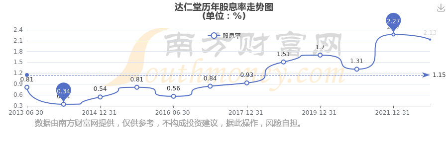 近年達(dá)仁堂年度股息率走勢如下圖: