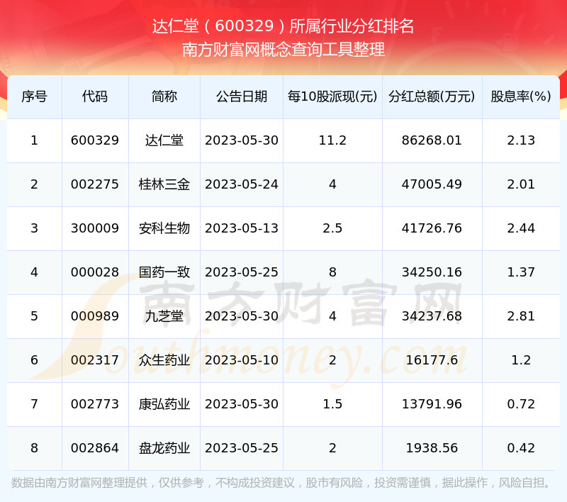 二、達(dá)仁堂600329行業(yè)分紅排名